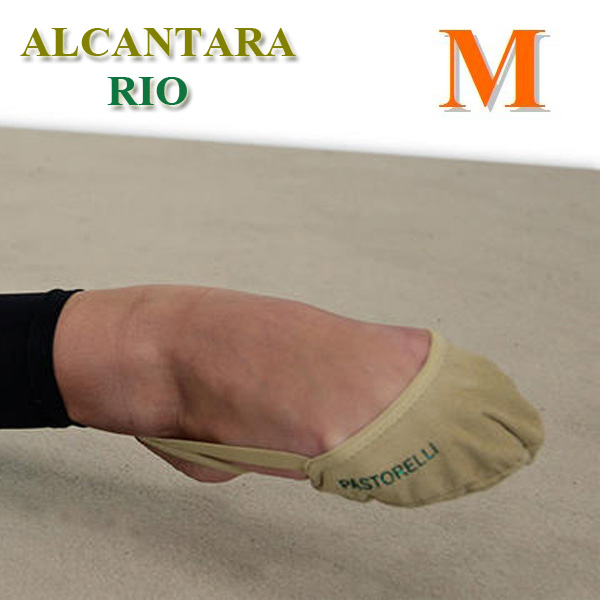 Профессиональные получешки Pastorelli Alcantara RIO из искусственной замши (алькантара) для художественной гимнастики. Pastorelli Alcantara Rio мягкие и прочные для идеальной работы ступни. Модель Alcantara Rio отличается от модели Alcantara более глубоким вырезом для ноги. Особенностью этого материала является его эластичность и особая прочность включая во внимание плотность ткани. Такие испытания, как трение показали, несмотря на лёгкость материала, продолжительность использования материала алькантара намного выше чем, другие ткани соответствующей плотности. Идеальное облегание ступни в соединении с мягкостью и прочностью.